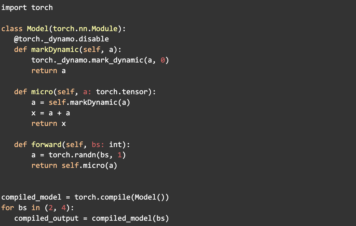 使用 PyTorch 的mark_dynamic API 有助於在編譯前識別動態形狀。由於許多重新編譯發生在編譯期間張量形狀發生變化時,將這些形狀標記為動態可以顯著減少重新編譯的次數。這反過來又提高了整體 PT2 編譯時間。