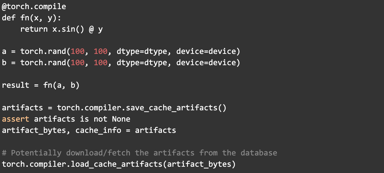 - torch.compiler.save_cache_artifacts()