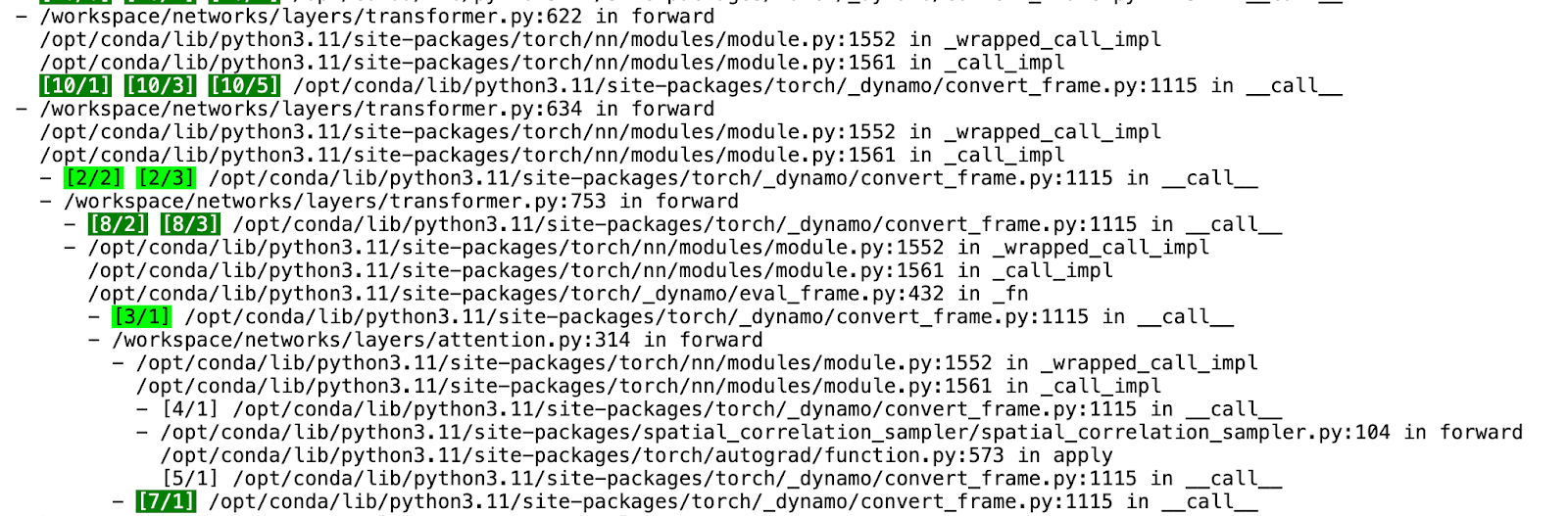 在檢查 Tlparse 的輸出時,我們關注 PT2 編譯堆疊的以下關鍵元件:
