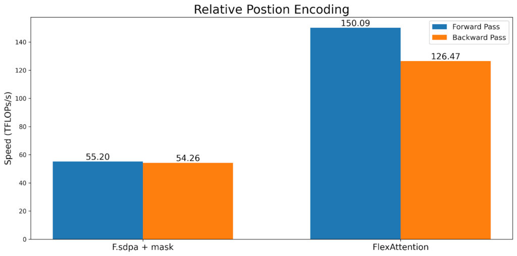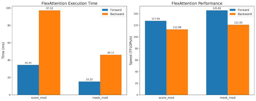 FlexAttention 在前向傳播中實現了 FlashAttention2 90% 的效能,在反向傳播中實現了 85% 的效能。FlexAttention 目前正在使用一種確定性演算法,它比 FAv2 重新計算更多的中間結果,但我們計劃改進 FlexAttention 的反向傳播演算法,並希望彌合這一差距!