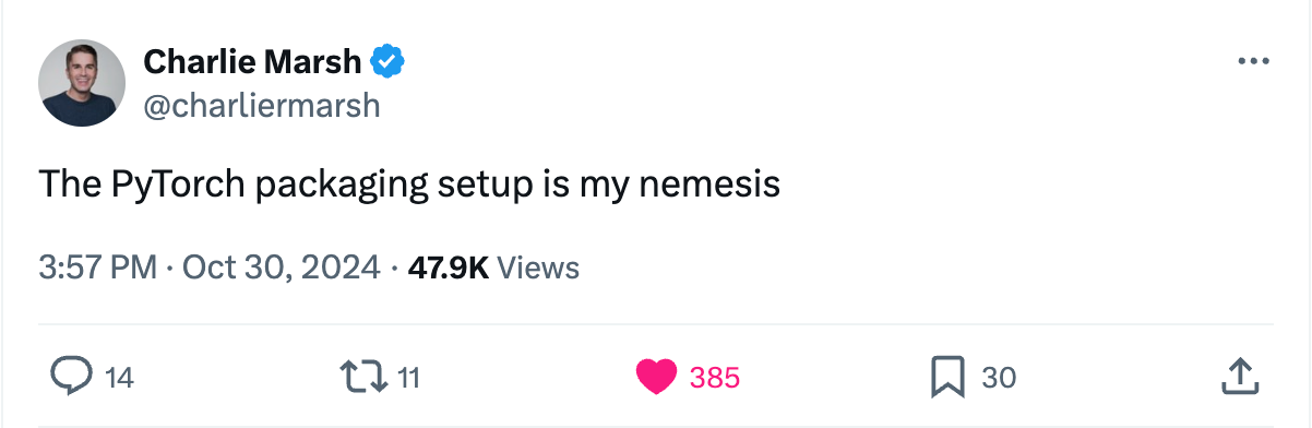 這篇文章將重點關注 wheel 變體試圖解決的問題,以及它們如何影響 PyTorch 打包(以及整個 Python 打包)生態系統的未來。