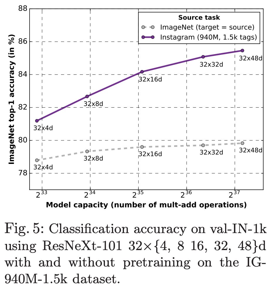 | ResNeXt-101 32x48d | 829M | 153B | 85.4 | 97.6 |