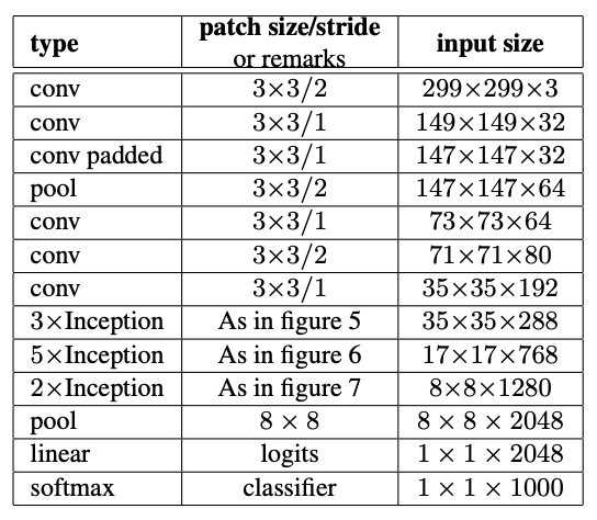 Inception v3:基於對網路擴充套件方式的探索,旨在透過適當分解的卷積和積極的正則化儘可能高效地利用增加的計算。我們在 ILSVRC 2012 分類挑戰驗證集上對我們的方法進行了基準測試,結果表明,相對於最先進的技術取得了顯著的進步:對於單幀評估,使用每次推理計算成本為 50 億次乘加,引數少於 2500 萬的網路,實現了 21.2% 的 top-1 錯誤和 5.6% 的 top-5 錯誤。透過 4 個模型的整合和多裁剪評估,我們在驗證集上報告了 3.5% 的 top-5 錯誤(測試集上為 3.6% 的錯誤),在驗證集上報告了 17.3% 的 top-1 錯誤。