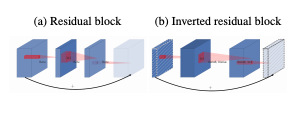 MobileNet v2 架構基於倒置殘差結構,其中殘差塊的輸入和輸出是較薄的瓶頸層,這與使用擴充套件表示作為輸入的傳統殘差模型相反。MobileNet v2 使用輕量級深度可分離卷積來過濾中間擴充套件層中的特徵。此外,為了保持表示能力,窄層中的非線性被移除。