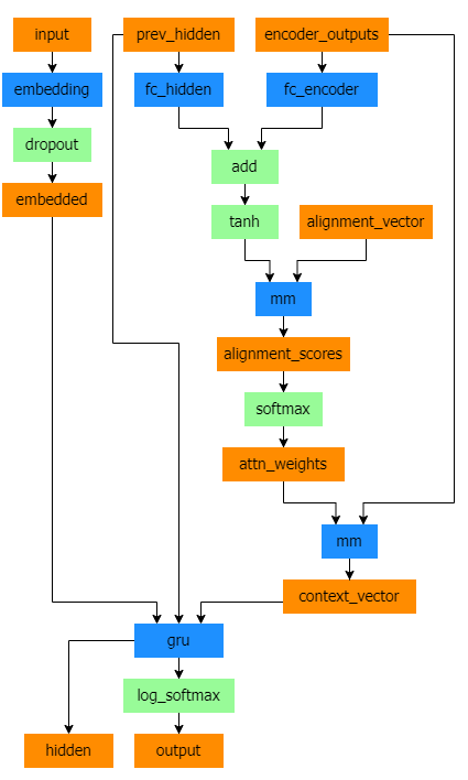 你還會發現之前的從零開始的 NLP:使用字元級 RNN 分類名稱 和 從零開始的 NLP:使用字元級 RNN 生成名稱 教程非常有用,因為這些概念分別與編碼器和解碼器模型非常相似。