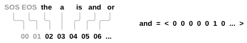 與字元級 RNN 教程中使用的字元編碼類似,我們將語言中的每個詞表示為一個獨熱向量,或者一個巨大的零向量,除了一個位置為一(該詞的索引)。與語言中可能存在的幾十個字元相比,詞的數量要多得多,因此編碼向量更大。然而,我們將稍微做一些妥協,僅使用每種語言的幾千個詞來修剪資料。